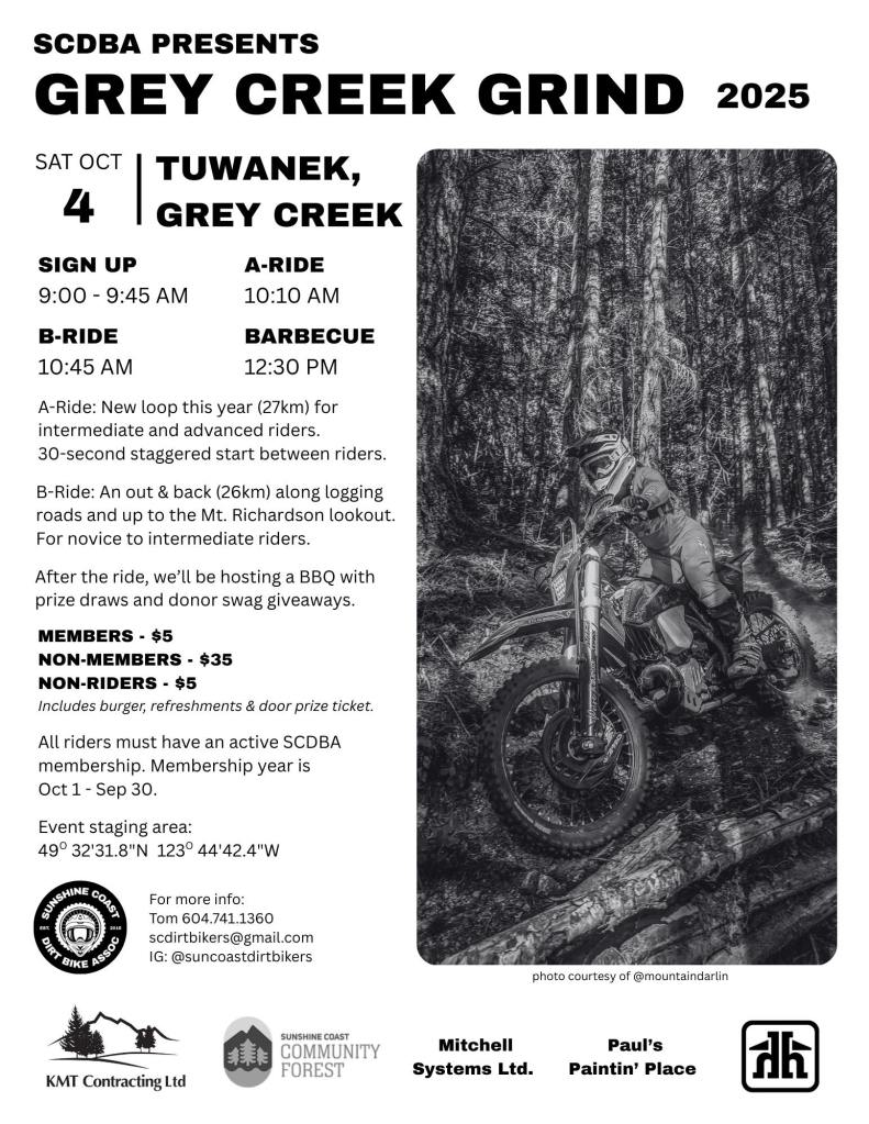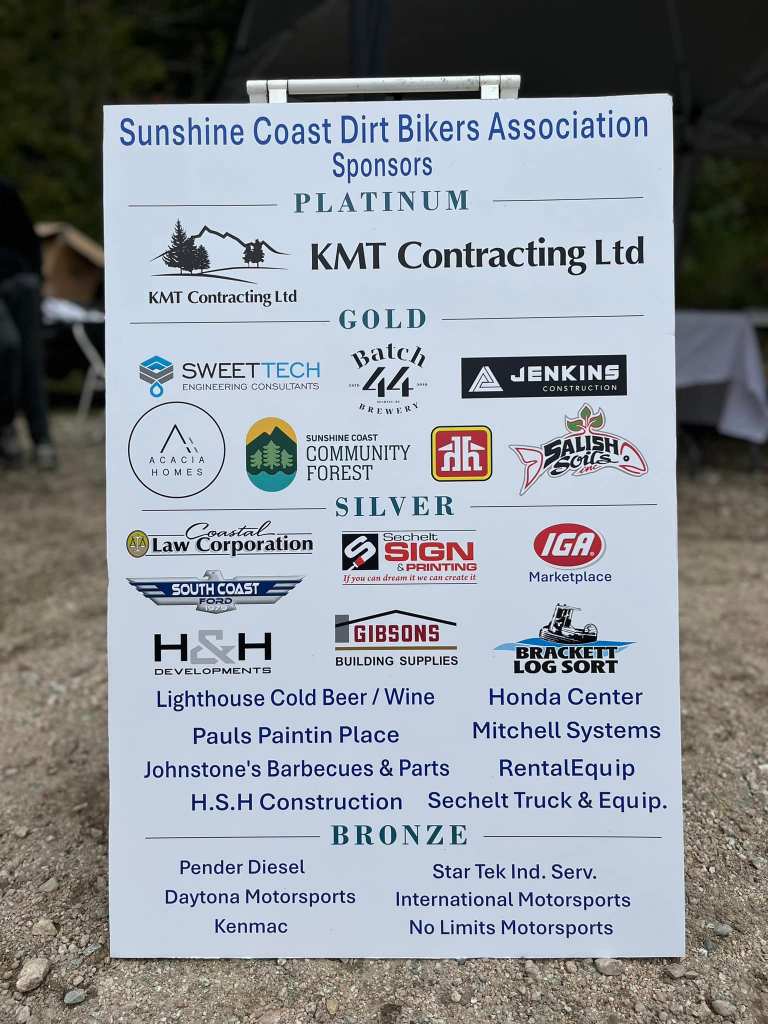 The Sunshine Coast Dirt Bike Association (SCDMA) is a community-driven, volunteer-run organization dedicated to promoting safe, sustainable, and enjoyable off-road motorcycling on the Sunshine Coast. As an active member of the British Columbia Off-Road Motorcycle Association (BCORMA), we work to protect rider access, support responsible trail stewardship, and collaborate with local partners to maintain and improve our diverse trail network. Our mission is to foster a welcoming environment for riders of all ages and skill levels while advocating for long-term, environmentally responsible motorized recreation in the region.